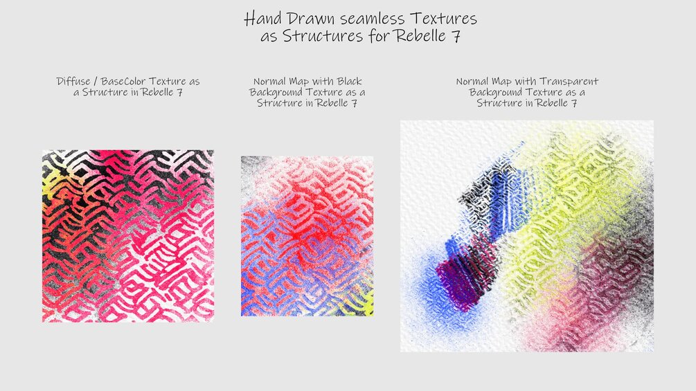 15 Hand Drawn 2D Seamless Textures. Includes Rebelle 7 Structures.